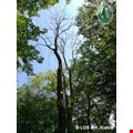 Dechtovité škvrny na kmeni a defoliácia koruny.