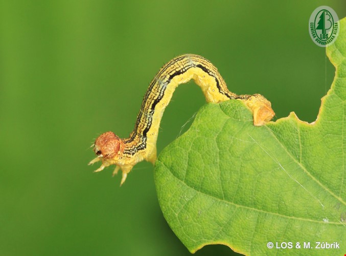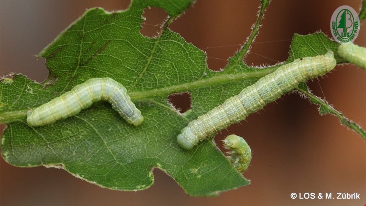 Na listoch sú prítomné zelené húsenice ktoré sa pohybujú typickým -piadivkovitým - pohybom.
