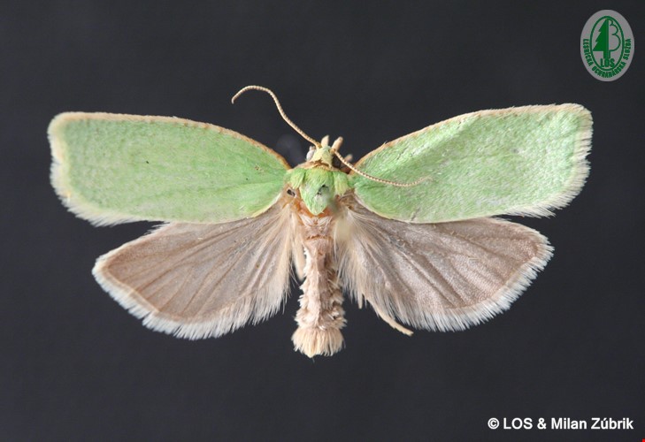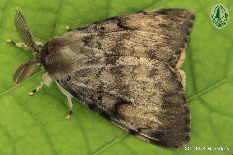 Motýľ s rozpätím krídel 4 - 8 cm, samičky sú väčšie ako samčekovia. Má hnedé kríhla s charakteristickou bielou škvrnou.Vývin trvá zvyčajne 2 roky, ale v teplejších rokoch je schopný vývin dokončiť aj za jeden rok. Škody spôsobujú húsenice svojim žerom, čo je znásobené tým, že sa vyvíjajú 2 roky a pri premnožení môžu spôsobiť holožery.