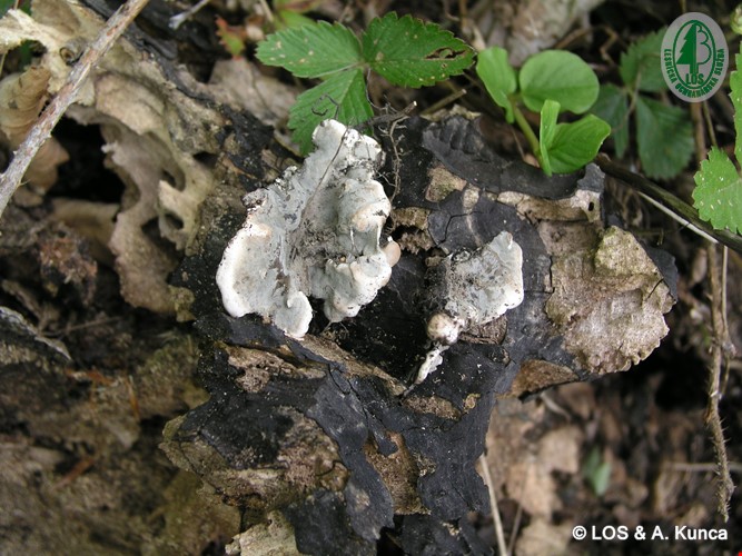 Drobné plodničky na vetvách a kmeni, ktoré s aobjavujú na ležiacich kmeňoch a vetvách vporaste po cca 3 rokoch od ich ponechania v poraste.