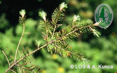 Hrdza na najmladšom ročníku ihlíc smreka.