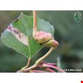 Na listových stopkách sa vytvára špirálovitá hálka a v nej sa vyvíjajú larvy vošiek. Hálky sú hojné v druhej polovici leta. Postupne ako "dozrievajú" menia farbu zo zelenej na červenú a cez praskliny v špirálovitej hálke, vylieza druhá generácia vošiek.