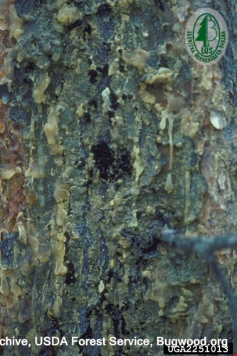Nekrózy kôry, po niekoľkých rokoch sa to vyvíja ako rakovina vetiev alebo kmeňa.