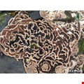 Na kmeni stromov prítomnosť polkruhových brázdovito pásikavých chlpatých plodníc o veľkosti 4 až 12 centimetrov.