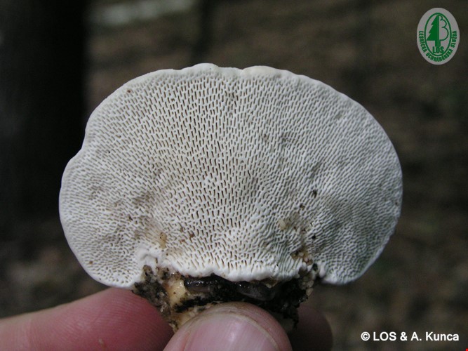 Plodnice sú klobúkovité, 5 až 15 centimetov veľké s výrazným hrboľom v blízkosti prirastania na drevo. Ústia rúrok sú zväčša lúčovito usporiadané, 1 až 5 mm dlhé a 1 mm hrubé, sú belavej farby neskôr slamovožltkasté ...Čas a spôsob kontroly