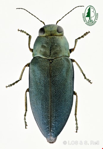 Imágo je lesklý modrý chrobák veľkosti 8-11 mm. Rojí sa v júli a auguste. Prezimuje larva v kôre. Na jar pokračuje v žere. Larvy vyžierajú charakteristické chodby najskôr v lyku, neskôr aj v beli. Kuklí sa v borke. Výletové otvory sú veľké 6 x 3 mm. Následkom žeru lariev v borovicových porastoch vo veku 40 - 60 rokov často dochádza k náhlemu úhynu stromov. Z kmeňov odpadáva kôra, pričo ...