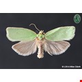 Motýľ s rozpätím krídel 45 – 50 mm. Krídla obidvoch pohlaví sú lesklo biele bez akejkoľvek kresby.