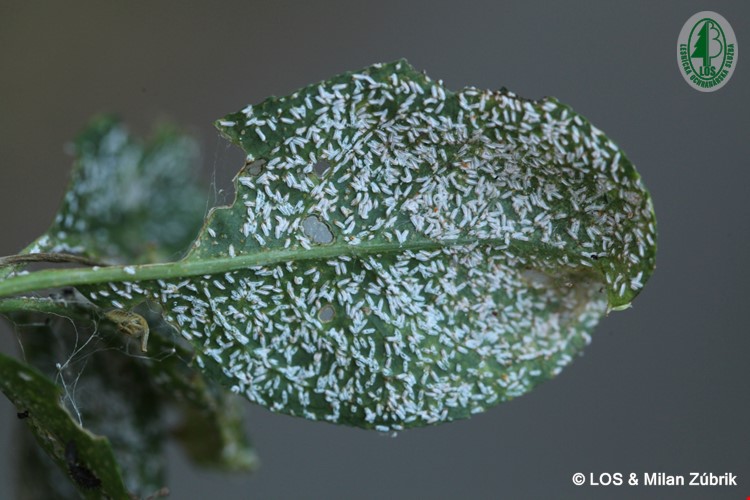 Na listoch sú prítomné zelené húsenice ktoré sa pohybujú typickým -piadivkovitým - pohybom.
