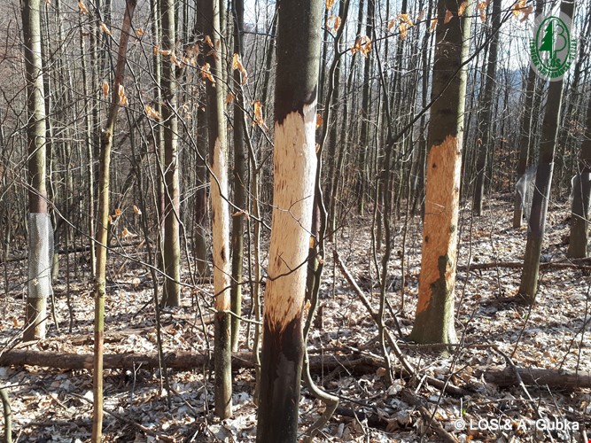 Zver najčastejšie poškodzuje porasty odhryzom, obhryzom, lúpaním, vytĺkaním, vyrývaním, odieraním, vyťahovaním, zlomením alebo zaľahnutím.