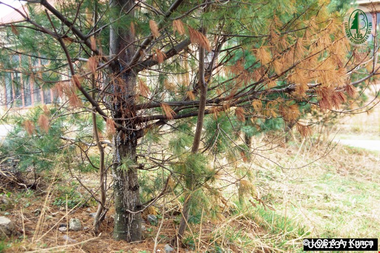 Spôsobuje vädnutie, žltnutie a v konečnej fáze odumieranie najmä ihličnatých drevín.