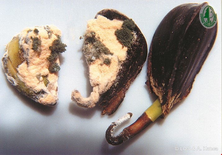 Mycélium tvorí plesňovité povlaky, spočiatku biele neskôr sa menia na ružové.